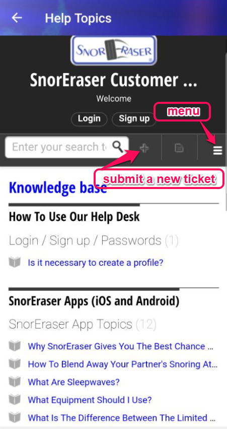 - Tap the plus (+) symbol to the right of the of the search box (see image below).